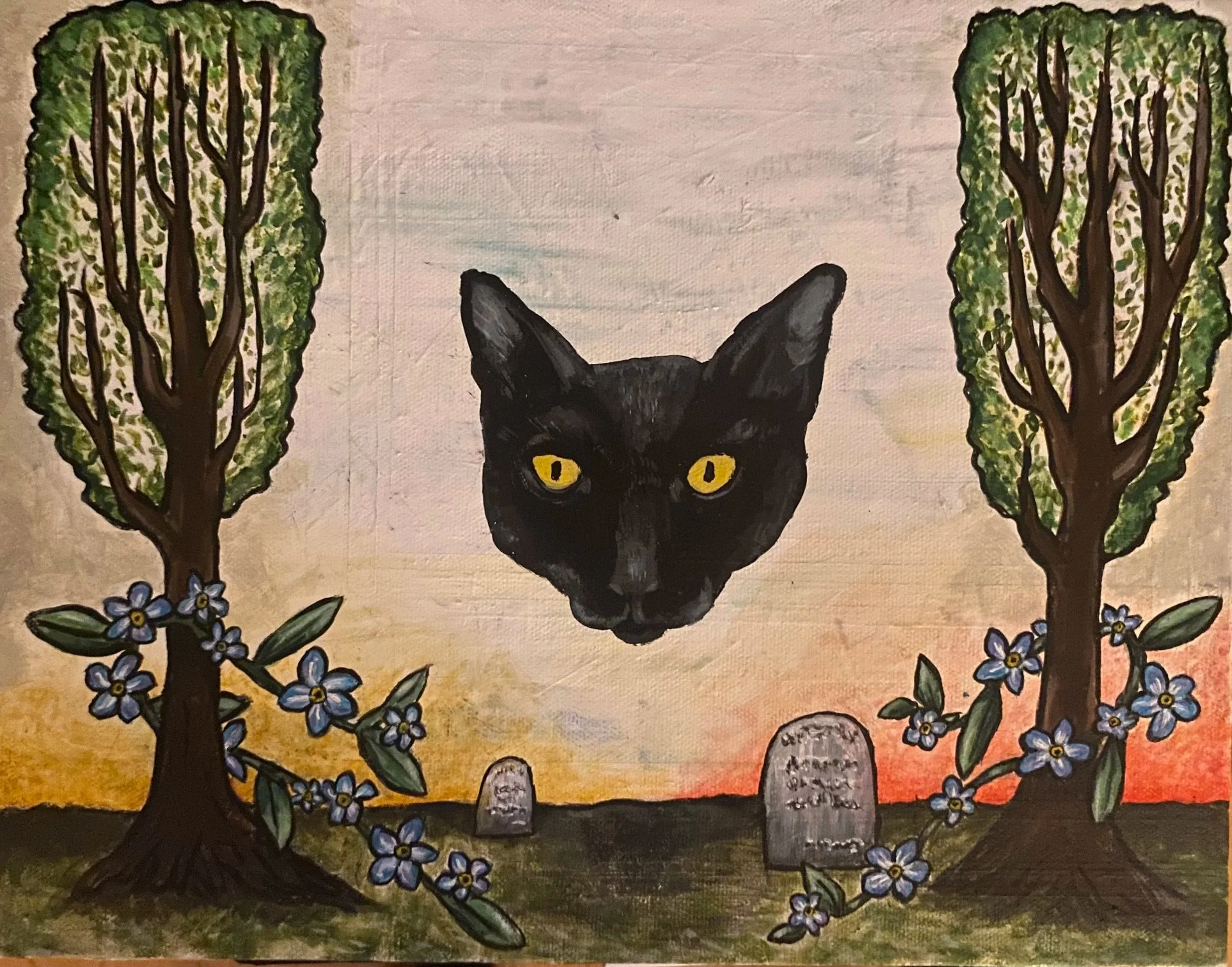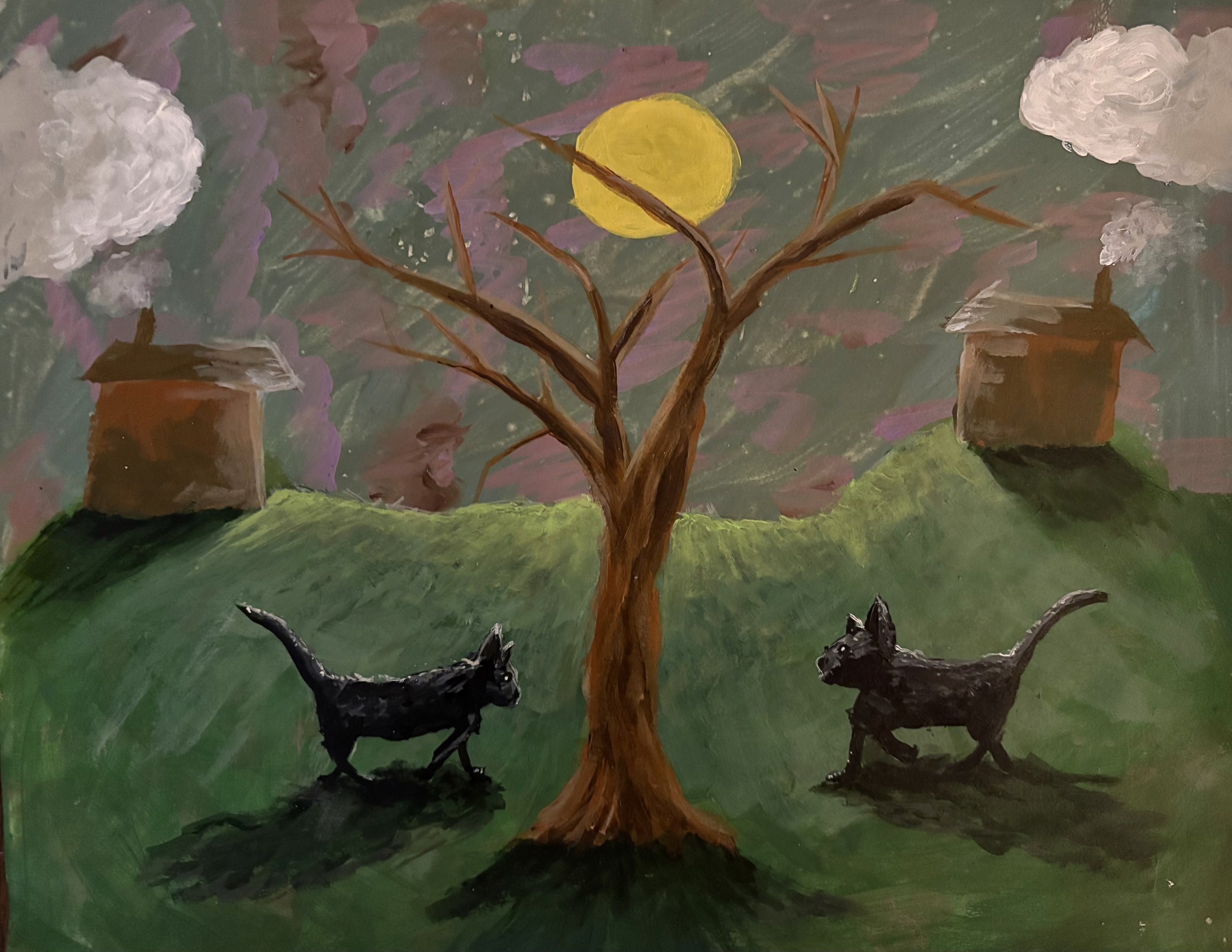 Two-Cat Tree, 11x14, acrylic, media paper.